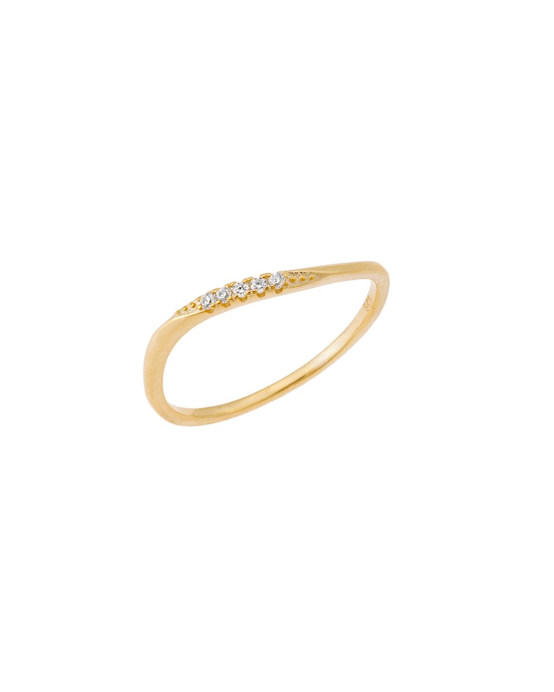Δαχτυλίδι Selena κίτρινο επιχρυσωμένο ασήμι 925, βεράκι με λευκά ζιργκόν