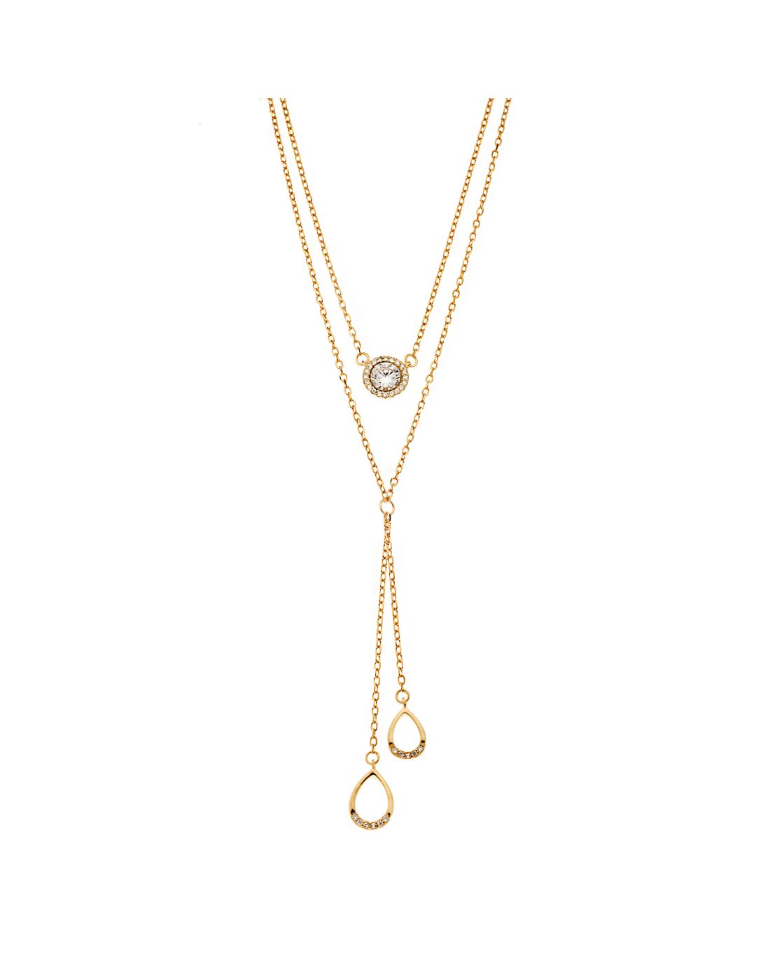 Κολιέ Selena από επιχρυσωμένο ασήμι 925, διπλή αλυσίδα με λευκά ζιργκόν και κρεμαστά δάκρυα SSR3926GD