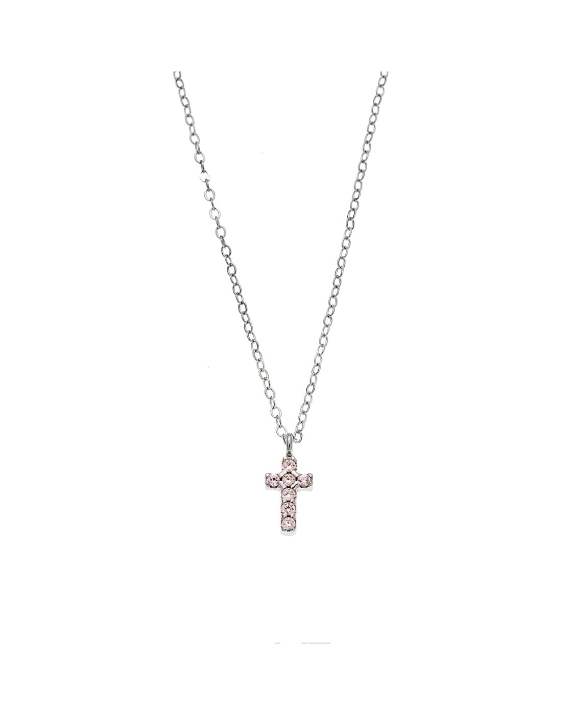Κολιέ Selena ασήμι 925, σταυρουδάκι διπλής όψης με ροζ και λευκά ζιργκόν