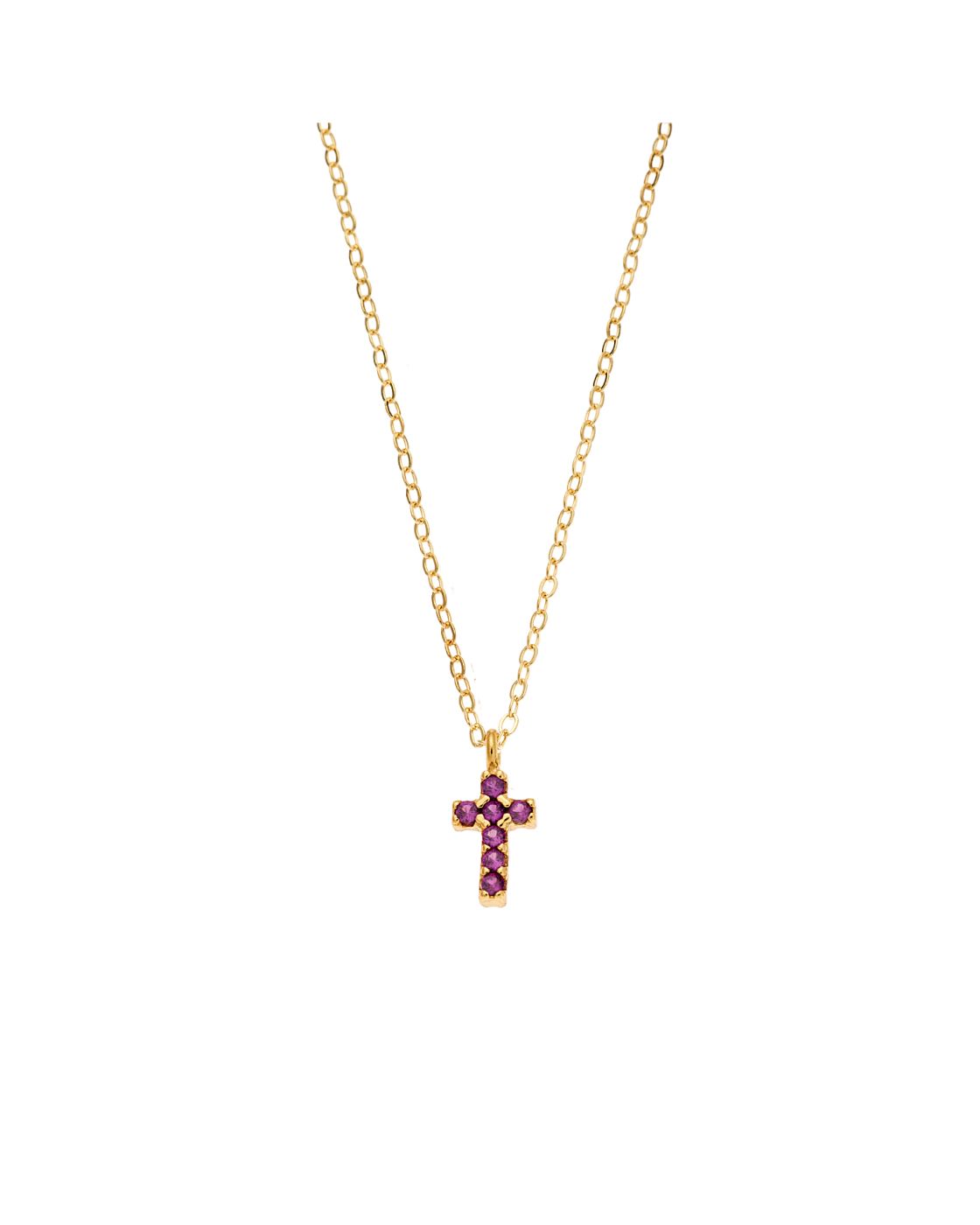 Κολιέ Selena επιχρυσωμένο ασήμι 925, σταυρουδάκι διπλής όψης με φούξια και λευκά ζιργκόν