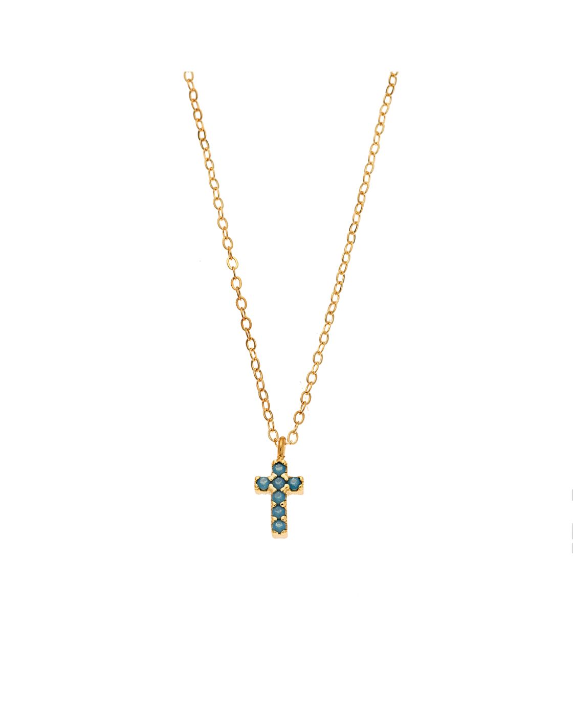 Κολιέ Selena επιχρυσωμένο ασήμι 925, σταυρουδάκι διπλής όψης με τυρκουάζ και λευκά ζιργκόν