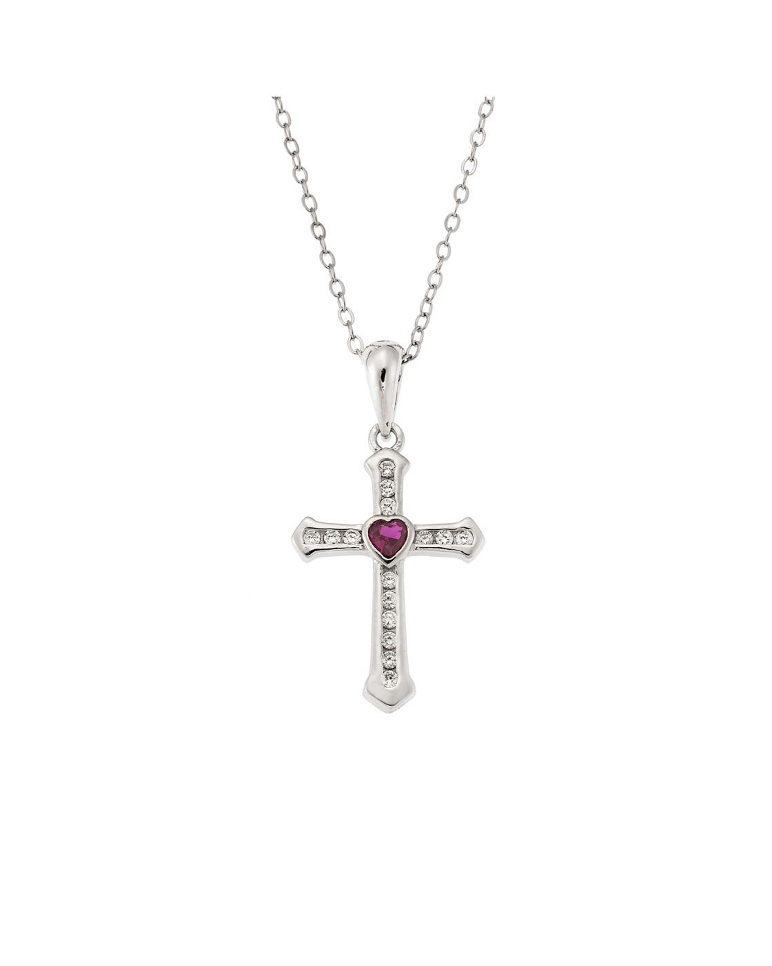 Μοτίφ Selena από ασήμι 925, σταυρουδάκι με φούξια καρδούλα και λευκά ζιργκόν