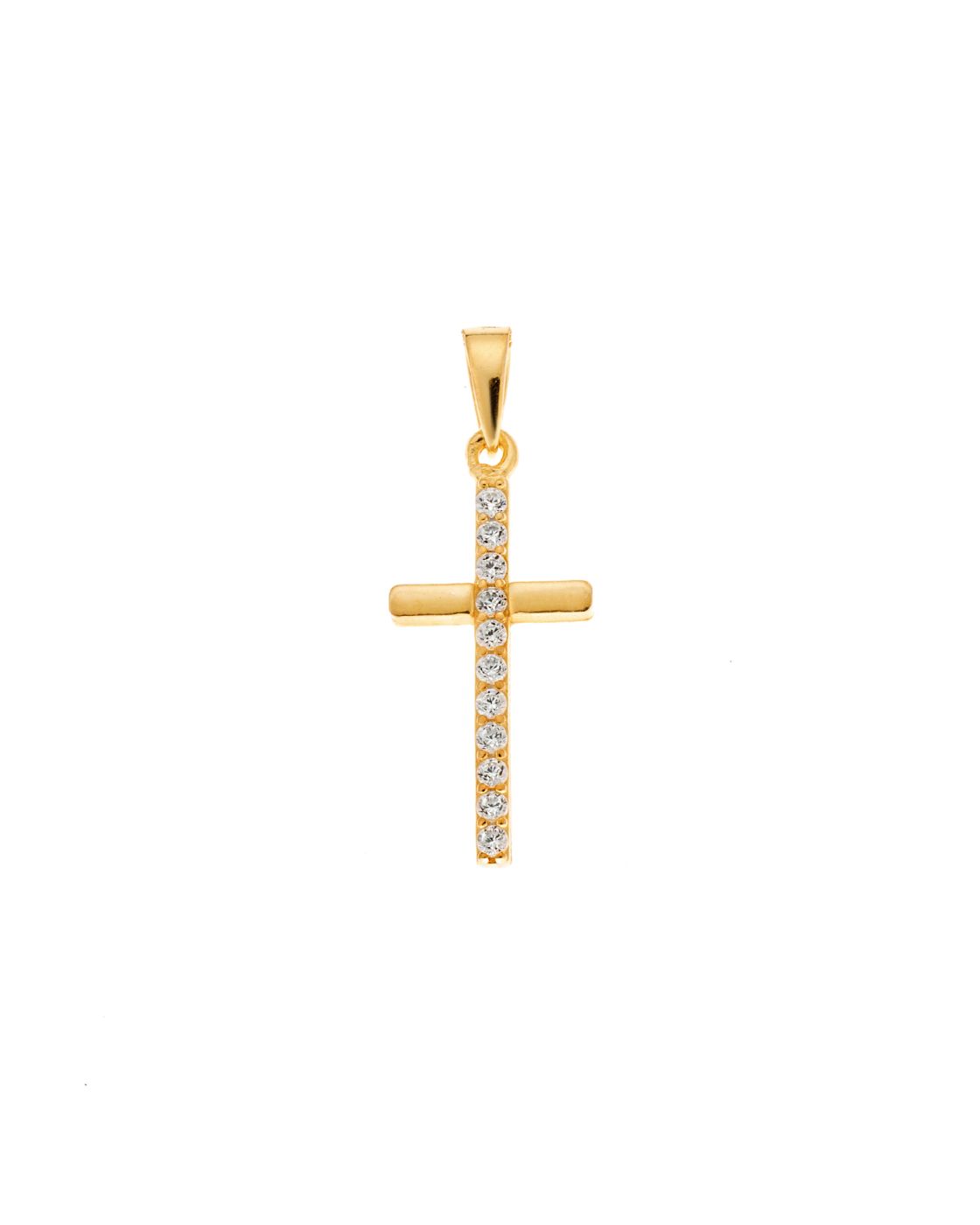 Μοτίφ Selena από Επιχρυσωμένο ασήμι 925, σταυρός με λευκά ζιργκόν