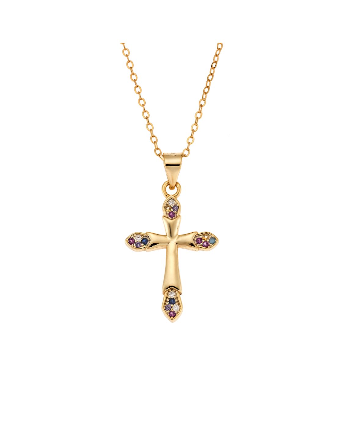 Μοτίφ Selena από επιχρυσωμένο ασήμι 925, σταυρουδάκι με πολύχρωμα ζιργκόν SSR3366GMU