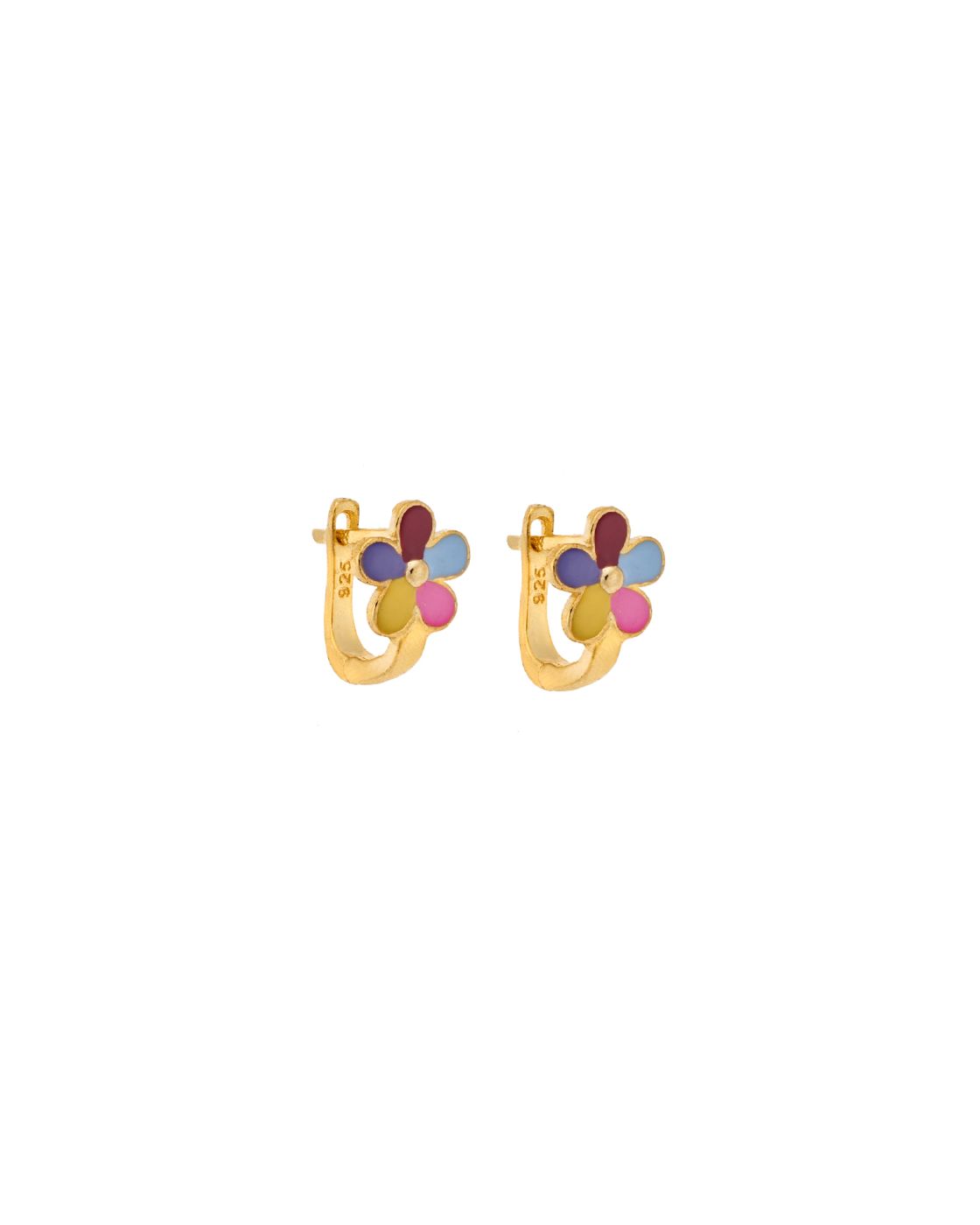 Σκουλαρίκια Κρίκοι Selena από επιχρυσωμένο ασήμι 925, με πολύχρωμη μαργαρίτα