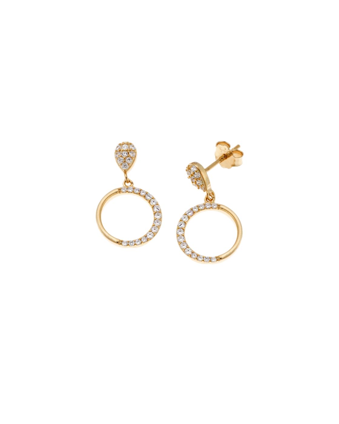 Σκουλαρίκια Selena από επιχρυσωμένο ασήμι 925, κύκλος με λευκά ζιργκόν