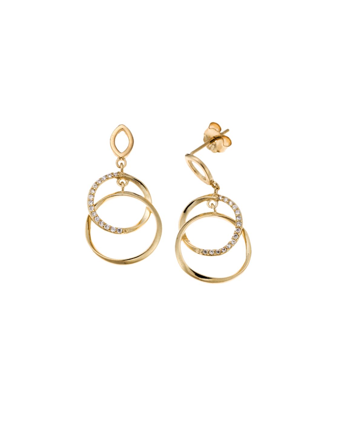 Σκουλαρίκια Selena από επιχρυσωμένο ασήμι 925, μπλεγμένοι κύκλοι με λευκά ζιργκόν