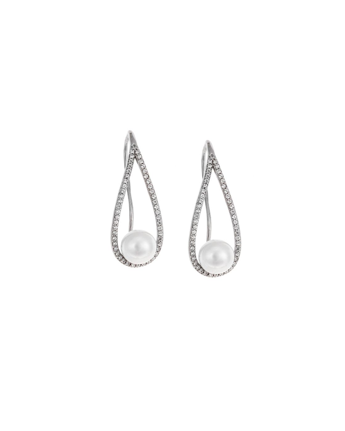 Σκουλαρίκια Selena ασήμι 925, δάκρυ με μαργαριτάρι και λευκά ζιργκόν SSR2041