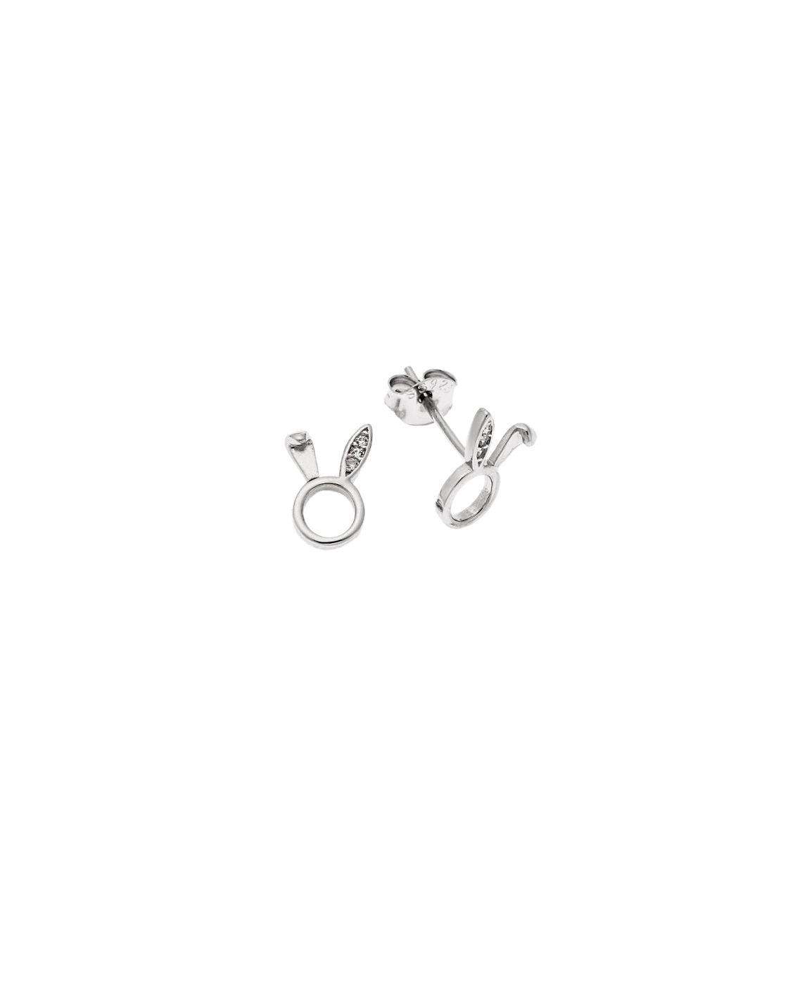 Σκουλαρίκια Selena ασήμι 925, κουνελάκι με λευκά ζιργκόν