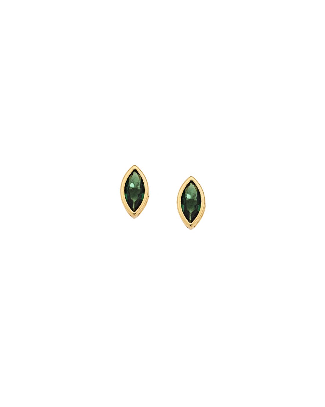 Σκουλαρίκια Selena κίτρινο επιχρυσωμένο ασήμι 925, φύλλο με σμαραγδί ζιργκόν