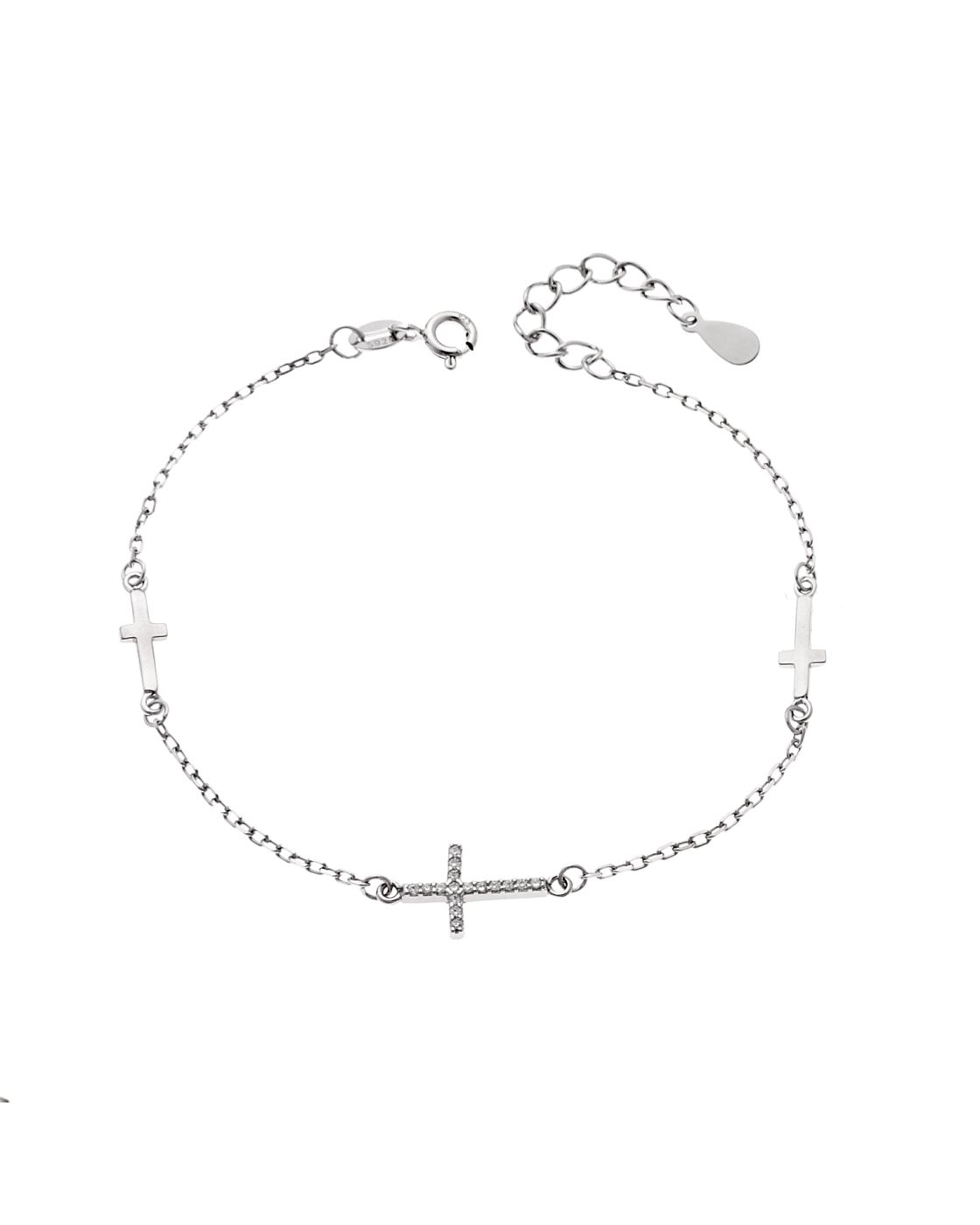 Βραχιόλι Γυναικείο Selena από ασήμι 925, τριπλός σταυρός με ζιργκόν πέτρες