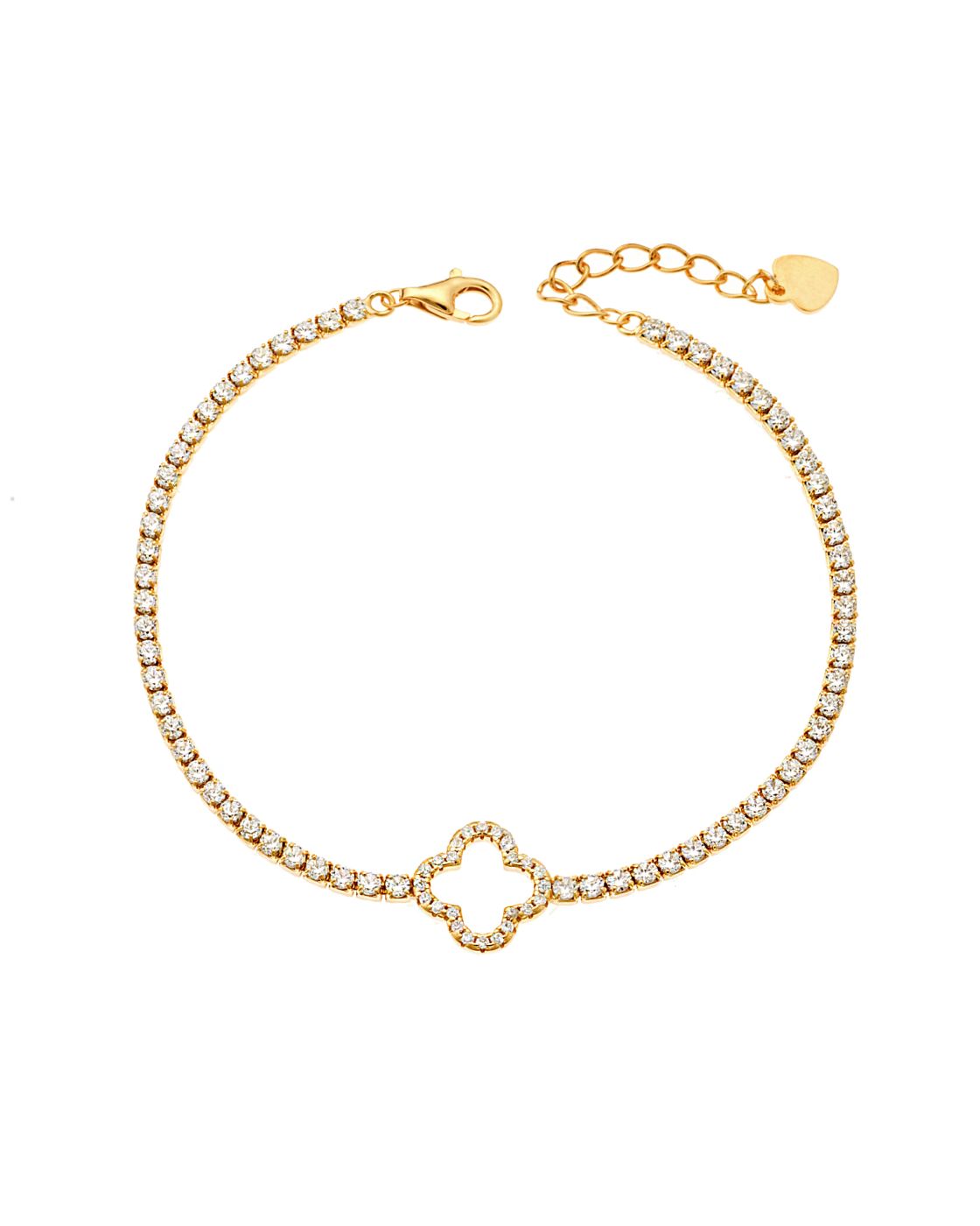 Βραχιόλι Selena από επιχρυσωμένο ασήμι 925, Ριβιέρα με σταυρό και λευκά ζιργκόν