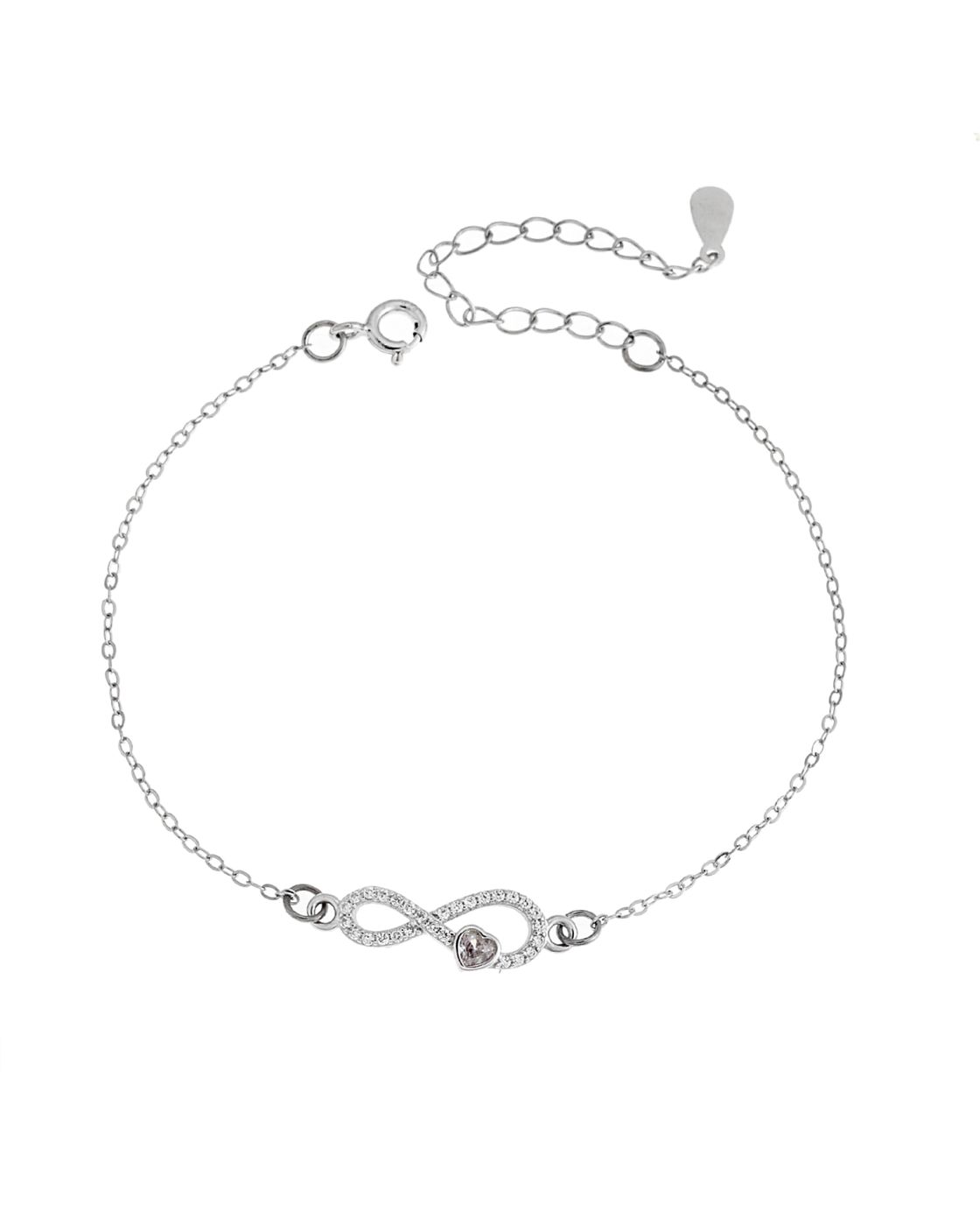 Βραχιόλι Selena Silver 925, επιπλατινωμένο άπειρο καρδιά με ζιργκόν πέτρες