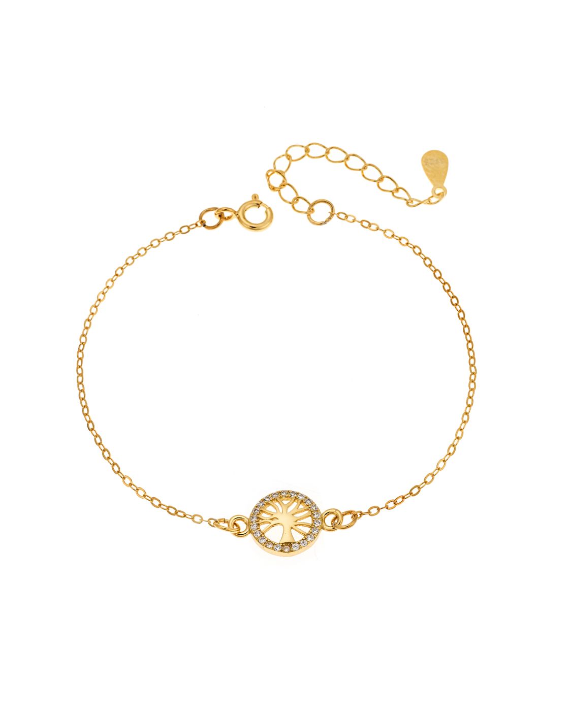 Βραχιόλι Selena Silver 925, επιχρυσωμένο δέντρο της ζωής με λευκά ζιργκόν