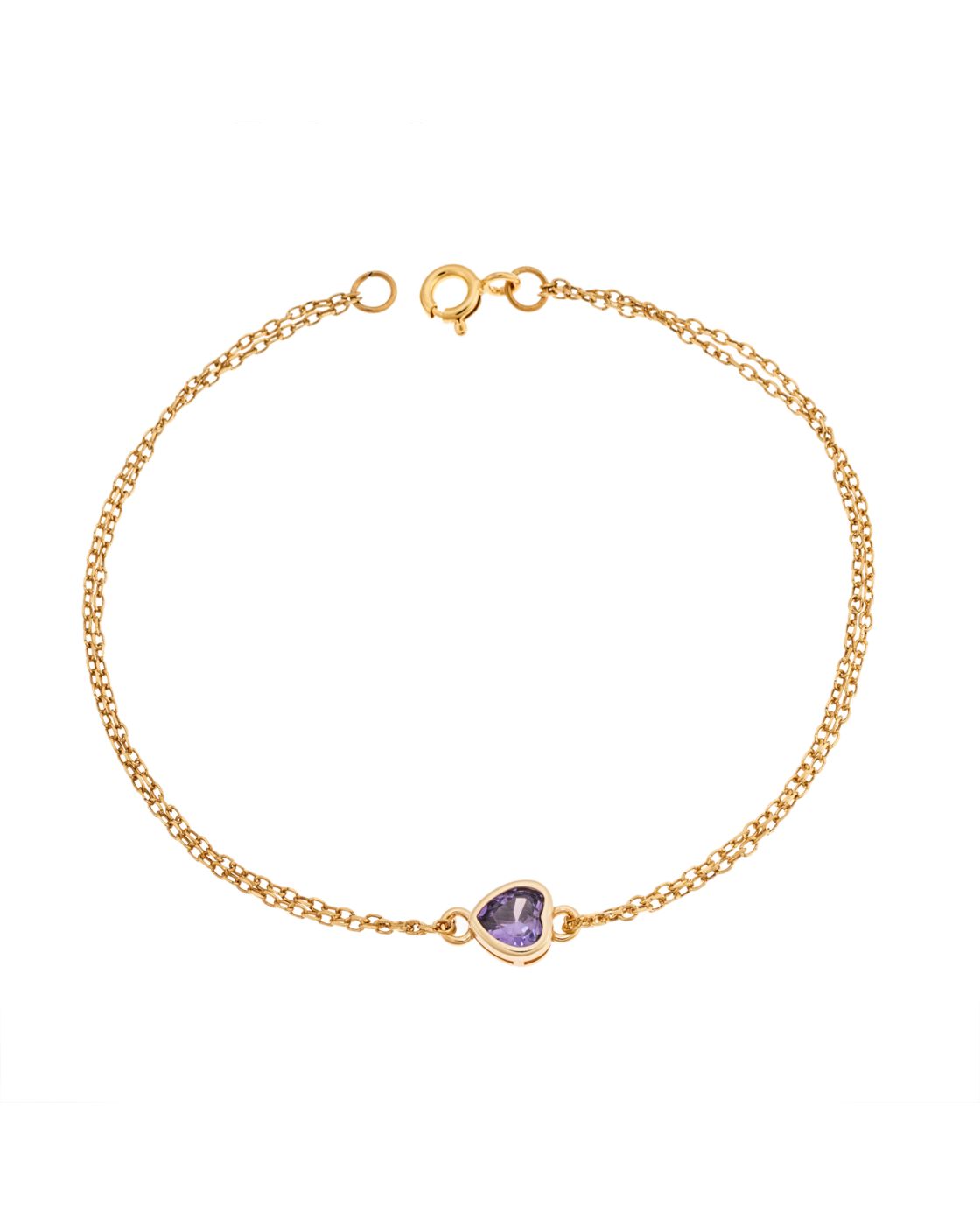 Βραχιόλι Selena Silver 925 Gold Plated, καρδιά με μωβ ζιργκόν