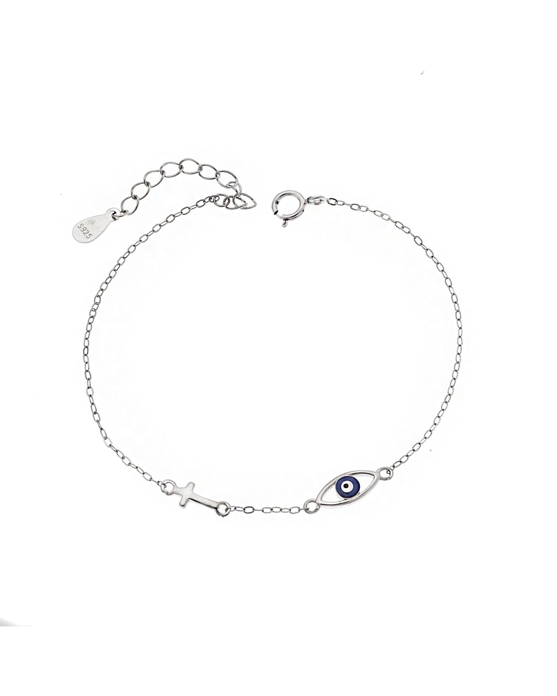 Βραχιόλι Selena Silver 925, Μάτι με σμάλτο και σταυρουδάκι