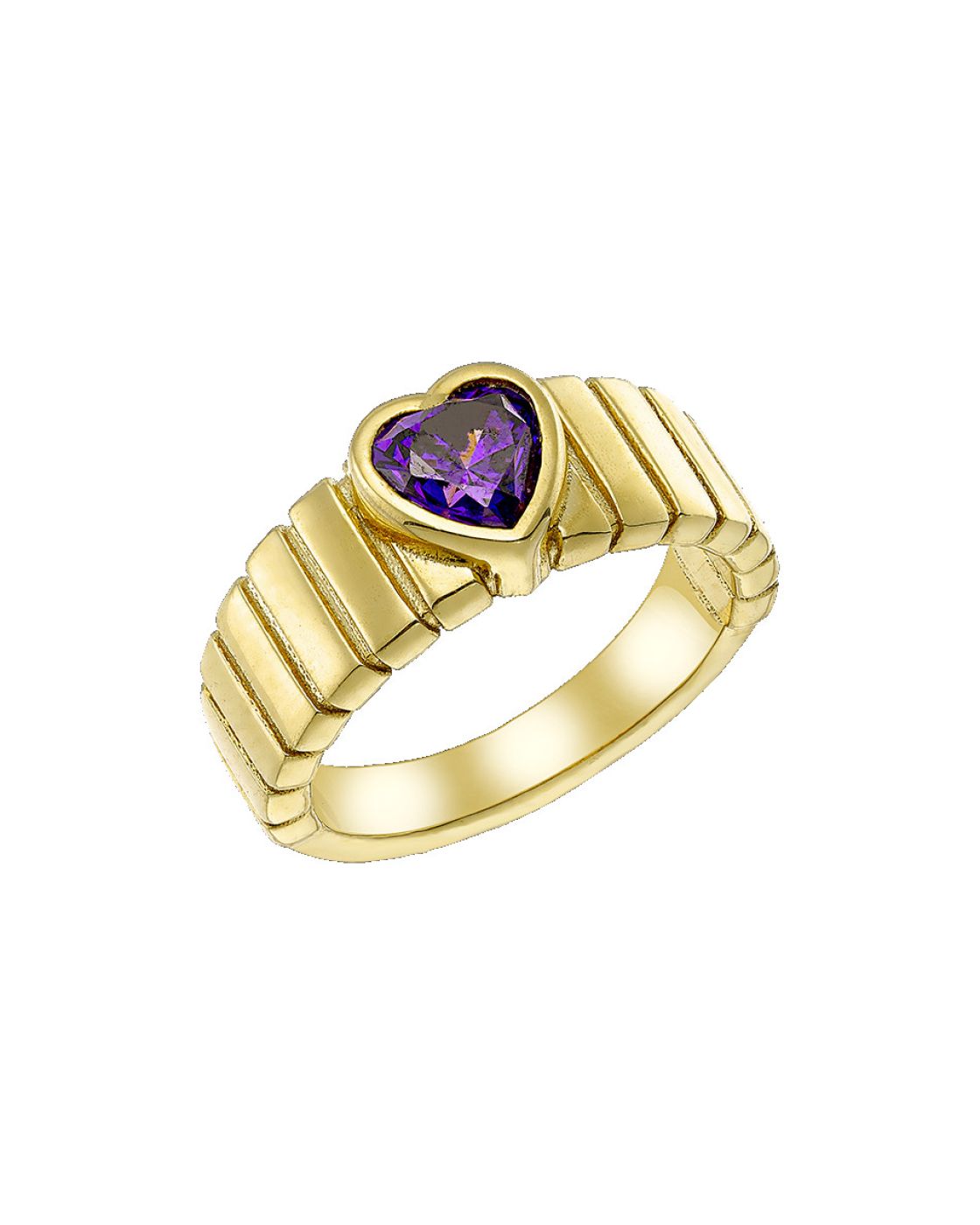 Είναι ένα μοντέρνο δαχτυλίδι της σειράς “Inspiration” σε Ασήμι 925 σε κίτρινο χρυσό 18 καρατιών επιμετάλλωση και μωβ πέτρα.
