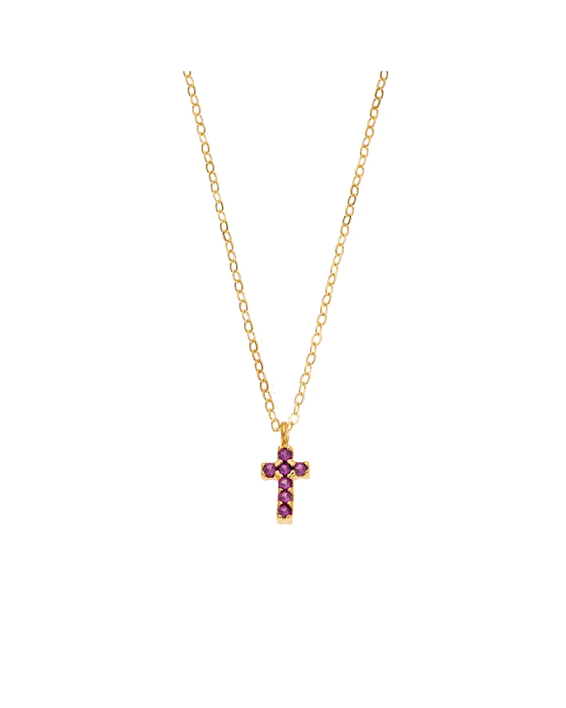 Κολιέ Selena επιχρυσωμένο ασήμι 925, σταυρουδάκι διπλής όψης με φούξια και λευκά ζιργκόν