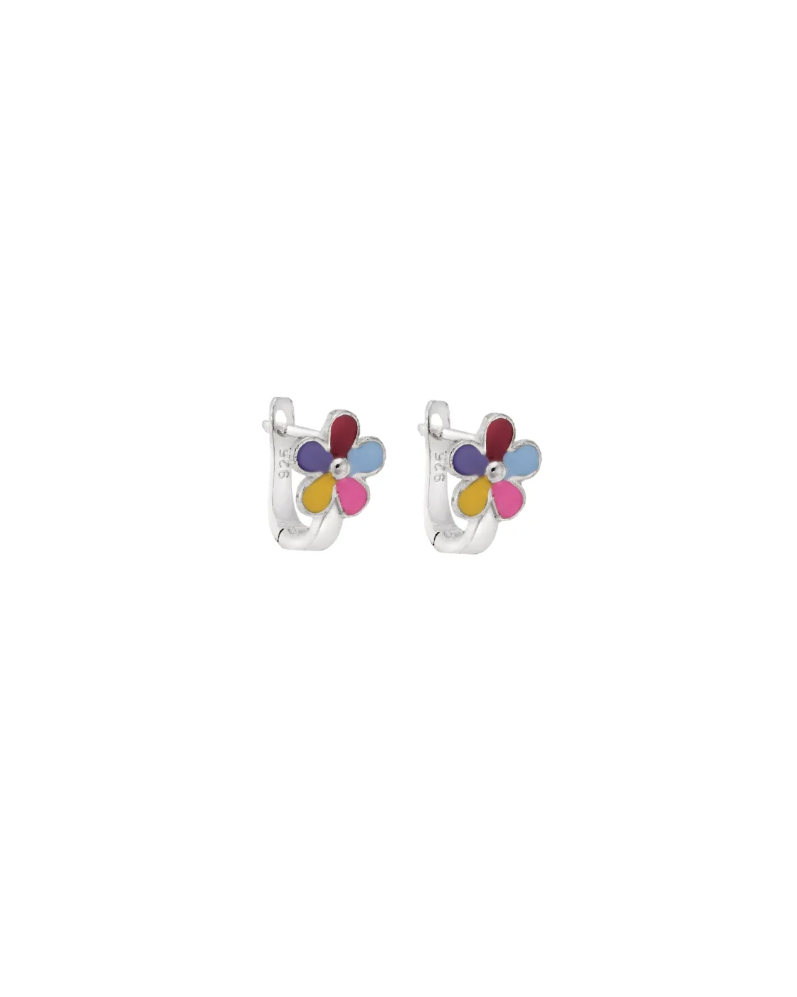 Σκουλαρίκια Κρίκοι Selena από ασήμι 925, με πολύχρωμη μαργαρίτα