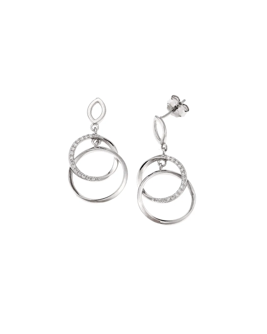 Σκουλαρίκια Selena από ασήμι 925, μπλεγμένοι κύκλοι με λευκά ζιργκόν
