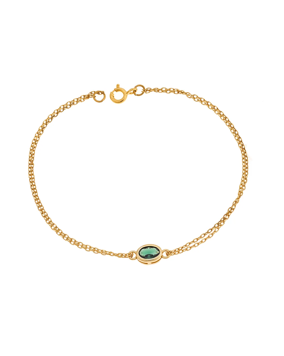 Βραχιόλι Selena Silver 925 Gold Plated, οβάλ με πράσινο ζιργκόν