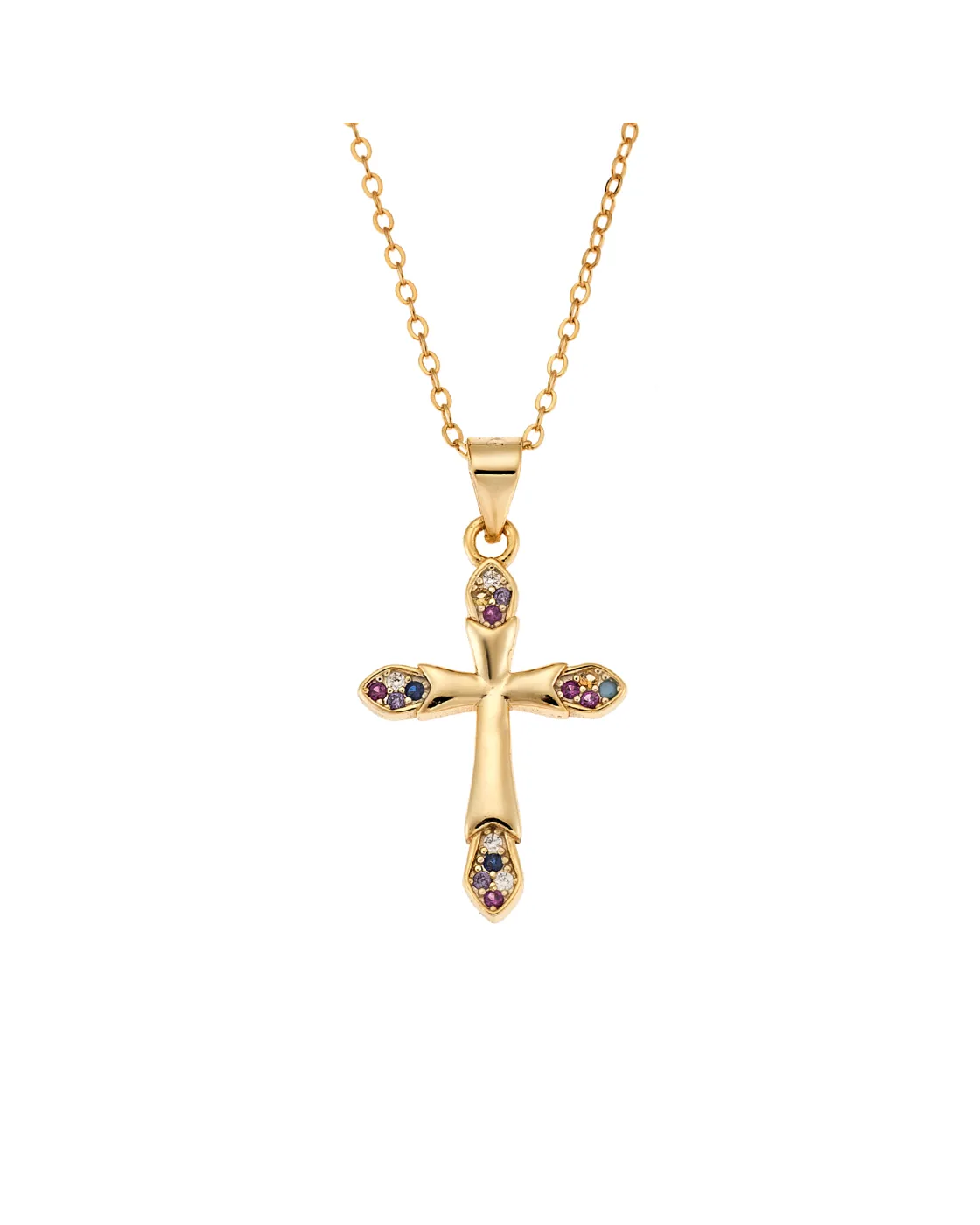 Μοτίφ Selena από επιχρυσωμένο ασήμι 925, σταυρουδάκι με πολύχρωμα ζιργκόν