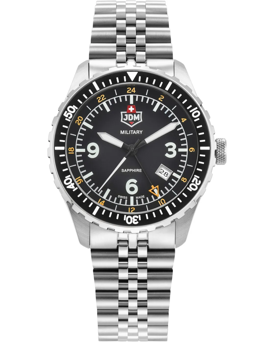 Το ρολόι JDM Wingman JDM-WG028-03 διαθέτει εγγυημένη ακρίβεια & αξιοπιστία, και ως προϊόν ελβετικής ωρολογοποιίας είναι κατασκευασμένο να αντέχει σε δύσκολες συνθήκες. Τα ρολόγια JDM έχουν καντράν από κρύσταλλο αχάρακτου ζαφειριού που τα προστατεύουν από γρατζουνιές & θραύσεις.