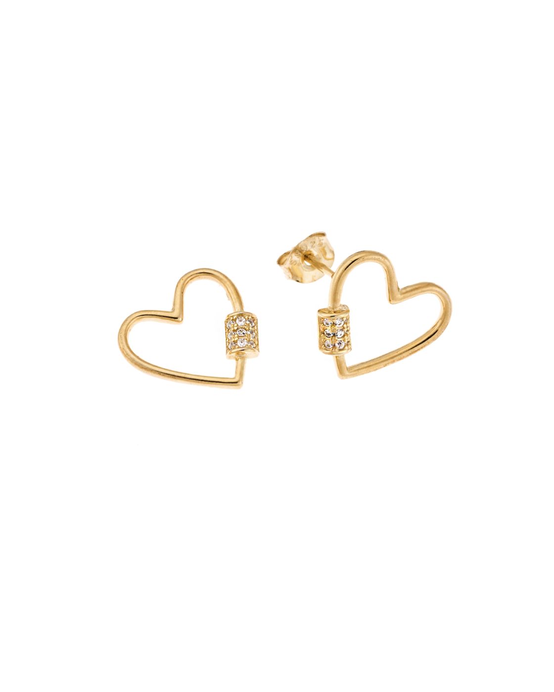 Σκουλαρίκια Selena επιχρυσωμένο ασήμι 925, κρεμαστή καρδιά με λευκά ζιργκόν