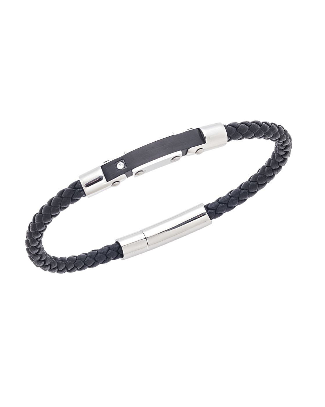Βραχιόλι Selena Men's Silver Stainless Steel With Black Leather