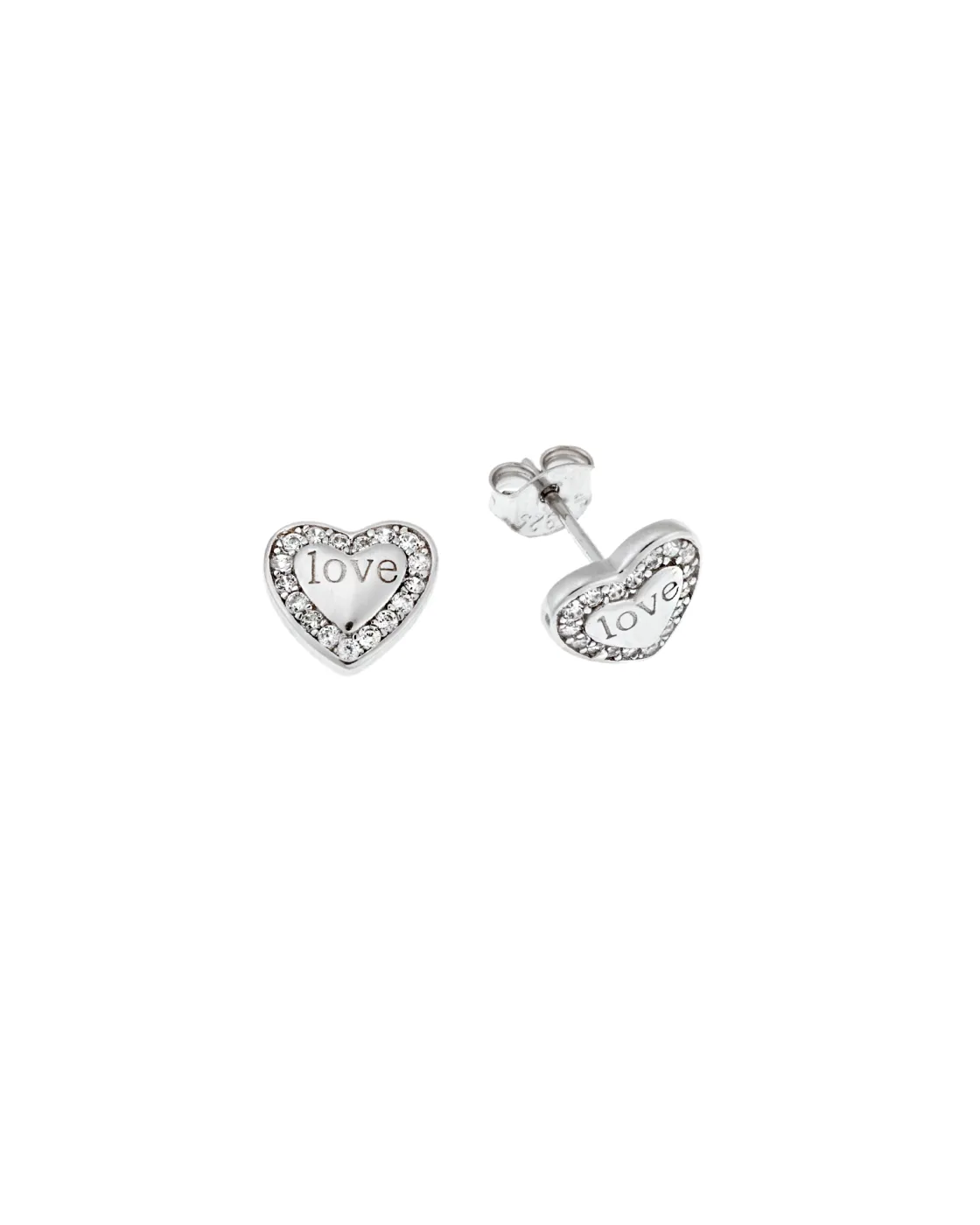 Σκουλαρίκια Selena ασήμι 925, καρδούλα με λευκά ζιργκόν